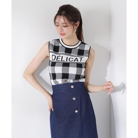 ニットならではのギンガム柄が、オトナ可愛いジャガードニットです。PROPORTIONらしい優しいカラーリングに仕上げています。デニムアイテムと合わせたコーディネートが夏らしくておすすめ。※ロゴの意味、D□licat・繊細な