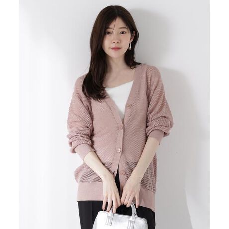 程よいラメ糸が編み込まれたロングカーディガンです。繊細な柄編みのため涼しげな雰囲気で着ていただけます。さらりと羽織れるルーズなサイズ感なので、ワンピースはもちろん、スカートもパンツも合わせやすくておすすめ。夏のコーディネートに取り入れるだけで華やかに見せてくれます。