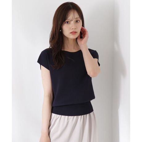 前後どちらを前にしても着られる2wayデザインのニットです。プルオーバーとしても、キラキラ釦が愛らしいカーディガン風にも着られるデザイン。キラキラ釦が付いている面は、裾にスリットが入っているため、ウエストアウトで着こなすがおすすめです。