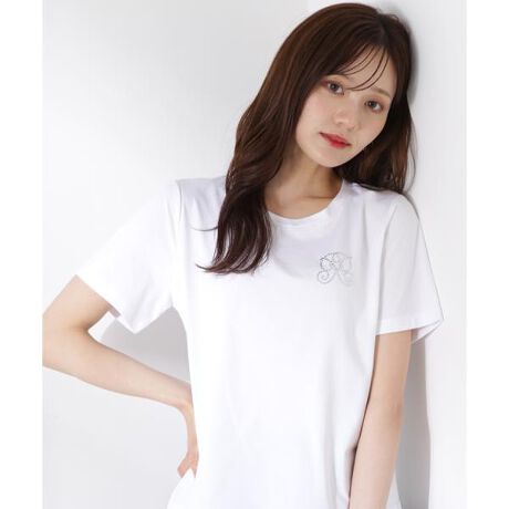 PROPORTIONのブランドロゴをきらきらホットフィットでワンポイント入れたTシャツです。きらっと光るロゴがシンプルながらも華やかなアクセントになります。大きすぎず小さすぎない、程よいサイズ感なので、ボトムスに合わせてウエストINもOUTも楽しめます。