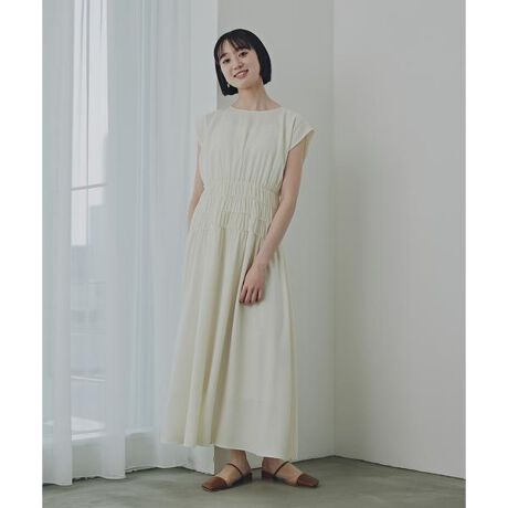 腰まわりにギャザーディテールを施した大人っぽいワンピースです。腰まわりをふんわりカバーしてくれるので体形カバーにもおすすめ。肩先がそっと隠れる袖丈なので着やすさも◎。ウエストはぐるりゴム仕様でラクに着ていただけます。<素材>さらっとした肌触りで表面感のある生地を使用しています。<詳細>仕様・後ろボタン裏地・スカート部分はあり透け感・ややあり / 光沢・なし / 伸縮性・なし生地の厚さ・普通※モデルの着用画像の場合、光の当たり具合により、実際の色味と異なって見えることがございます。色味は、商品単体の画像をご参照ください。