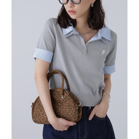 綿タッチのニットポロにシャツをレイヤードしたようなドッキングデザイントップス。トレンドのレイヤードスタイリングが1枚着るだけで完成します。左胸にはブランドロゴの頭文字を取った「F」刺しゅう入りでプレッピーな雰囲気に。グレーには無地サックスシャツ、ネイビーにはサックスストライプシャツ合わせで雰囲気の違うカラー展開です。ミニスカート合わせでヘルシーなプレッピースタイリングが今年らしくておすすめ。袖のカフスは伸ばしたままでも折り返しても着ていただけます。※モデルの着用画像の場合、光の当たり具合により、実際の色味と異なって見えることがございます。色味は、商品単体の画像をご参照ください。