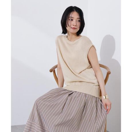 どんなスタイリングにも合うリラクシーで抜け感のあるニット。フレンチスリーブでさりげなく二の腕をカバーし、肌離れするオーバーシルエットで体型カバーもできる1枚。裾と袖口を天竺ロールにすることで、ワンテクある退屈しないデザインに。やや透け感とシャリ感のある糸を使っているので涼しく着ていただけます。レッドカラーはコーディネートに映えるのでおすすめです。<素材>麻タッチの涼しげな糸を使用。ざっくりめの天竺編みでほんのり透けがあり、涼しげな印象の素材です。<詳細>仕様・開閉なし裏地・なし透け感・ややあり / 光沢・なし / 伸縮性・あり生地の厚さ・普通※モデルの着用画像の場合、光の当たり具合により、実際の色味と異なって見えることがございます。色味は、商品単体の画像をご参照ください。