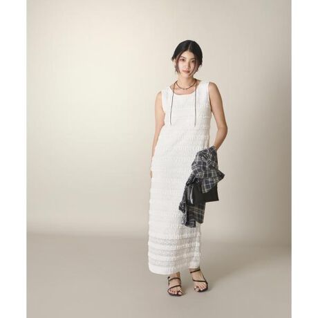 トレンドのボーダー調の立体レース素材を使ったノースリーブワンピースです。伸縮性のあるカットレース素材は動きやすく、裏地も付いているので安心して着ていただけます。シアーシャツをラフに羽織るのもおすすめです。