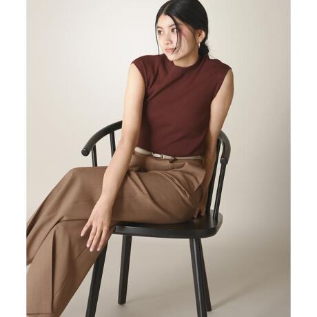 ボトルネックリブニット