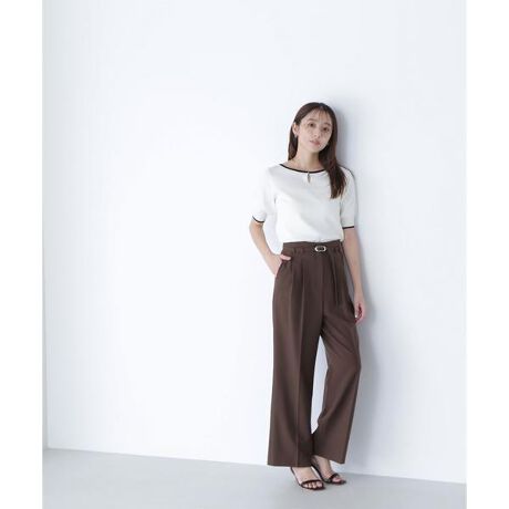 初秋にぴったりなNBBオリジナルカラーで仕上げたワイドパンツ。シンプルながらも、さりげないメタルバックルが効いたベルト付きできちんと見えも叶います。後ろウエストはゴム仕様でリラックスしたはき心地です。<素材>程よい落ち感のある合繊素材を使用しています。<詳細>仕様・前ファスナー裏地・なし透け感・なし / 光沢・なし / 伸縮性・なし生地の厚さ・普通※モデルの着用画像の場合、光の当たり具合により、実際の色味と異なって見えることがございます。色味は、商品単体の画像をご参照ください。