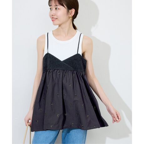 ・表面感のある小花柄のような刺しゅうがキャッチーなキャミソール型のブラウス!