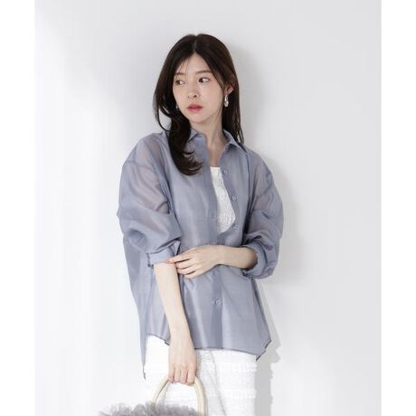 カーディガンを羽織るように使えるシアーシャツ。身頃は適度にゆとりのあるシルエットで軽やかに着ていただけます。襟は後ろに抜くように着こなすと抜け感がでておすすめ。キャミソールやタンクトップ、ノースリワンピースの上からさっと羽織るだけで様になるデザインです。