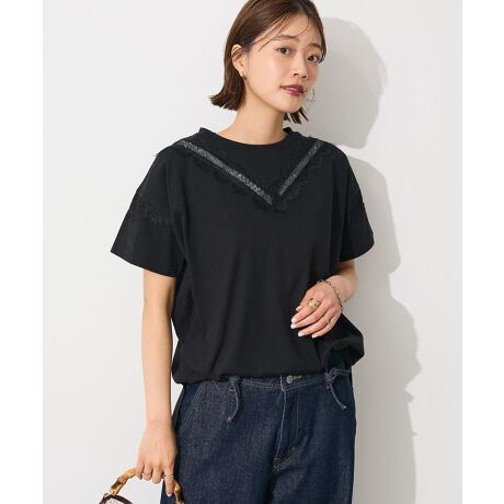 ・カジュアルの中にフェミニンな要素を感じるレースがポイント。