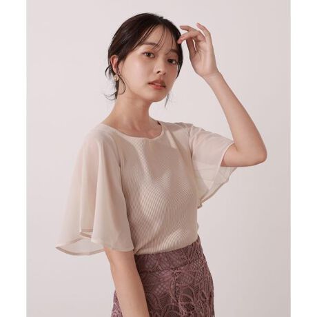 袖に繊細なシフォンスリーブを取り入れたリブニットです。シンプルなデザインながら、色のトーンを揃えた異素材コンビが女性らしく上品な印象に。二の腕をカバーする長めの袖丈なので、デイリーに着こなしやすいアイテムです。