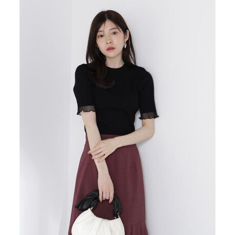 抜け感のあるシアーな袖口がデザインポイントのリブニットです。色によって袖口の配色が映えるデザインでコーディネートのポイントに。シンプルなデザインなので、ONもOFFスタイルにも着ていただけます。