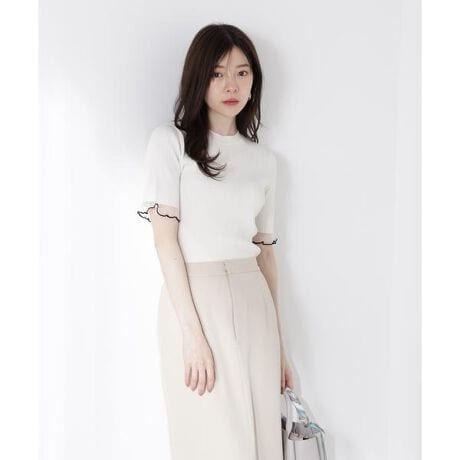 抜け感のあるシアーな袖口がデザインポイントのリブニットです。色によって袖口の配色が映えるデザインでコーディネートのポイントに。シンプルなデザインなので、ONもOFFスタイルにも着ていただけます。