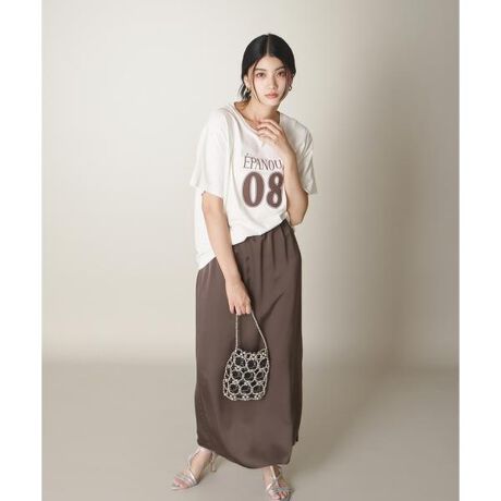 ウエストはゴム仕様、裏地はジャージ素材を使ったはき心地の良いナロースカートです。縦ラインがすらっと見えるナローシルエットに、サイドスリット入りでカジュアルさを演出。Tシャツからサマーニットまで相性が良く、トップスは裾を出して着こなすのがお勧めです。