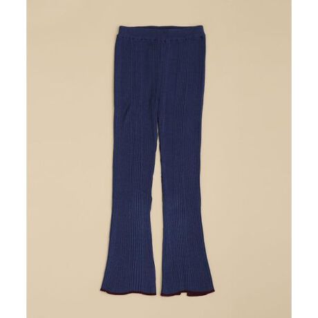 コットンカシミヤ糸で仕立てたニットレギンス。裾がややフレアになった定番シルエットで、裾端を配色にしたのもポイント。表情のあるランダムリブ編みと、センターバックにスリットをいれてシンプルな中に抜け感のあるデザインに。ウエストゴムでリラクシーに着られるから、お出かけからおうち時間にもオススメです。