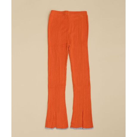 コットンカシミヤ糸で仕立てたニットレギンス。裾がややフレアになった定番シルエットで、裾端を配色にしたのもポイント。表情のあるランダムリブ編みと、センターバックにスリットをいれてシンプルな中に抜け感のあるデザインに。ウエストゴムでリラクシーに着られるから、お出かけからおうち時間にもオススメです。