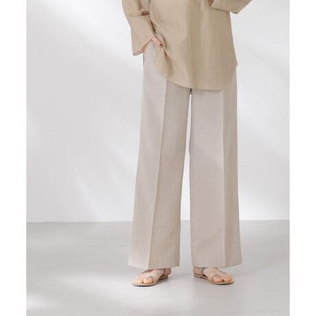 ベーシックなシルエットとシンプルなデザインで着回し力抜群のセンタープレスパンツ。ウエスト後ろゴムでリラクシーな履き心地を兼ね備えながら、デイリーにもオフィスシーンにも重宝するきちんと感のある一本です。
