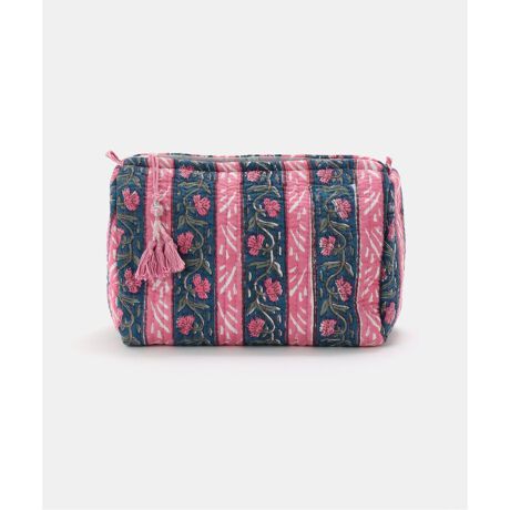 温かみのある風合いが特徴的なインドキルティングを使用したポーチ。