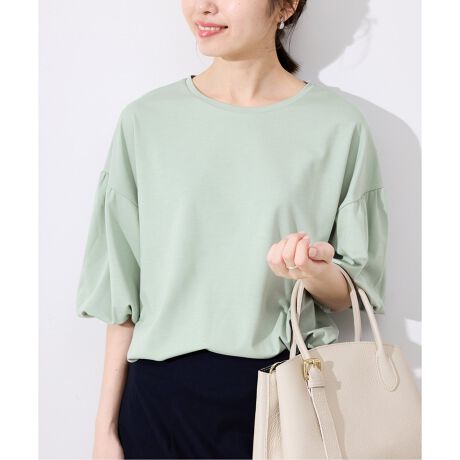 袖のギャザーが着こなしのアクセントに。