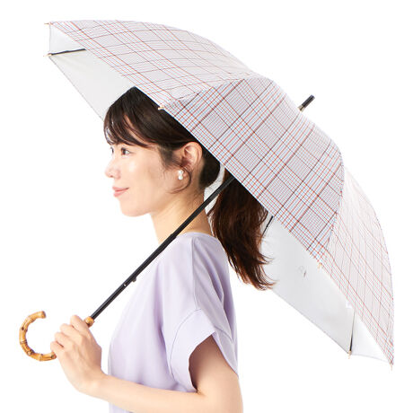 バンブーの持ち手と先染めの糸で織りあげた美しい発色のチェック柄がクラシカルな佇まいの晴雨兼用傘。表生地と調和する裏面カラーコーティングが洗練されたスタイルを完成させます。一級遮光生地を使用し、機能性も充実。タイムレスなデザインは幅広いシーンで活躍します。