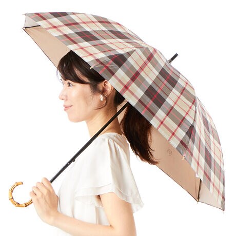 バンブーの持ち手と先染めの糸で織りあげた美しい発色のチェック柄がクラシカルな佇まいの晴雨兼用傘。表生地と調和する裏面カラーコーティングが洗練されたスタイルを完成させます。一級遮光生地を使用し、機能性も充実。タイムレスなデザインは幅広いシーンで活躍します。