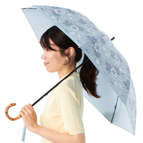 ブランドのアイコンであるバイブリーフラワー柄が華やかさを添える晴雨兼用傘。バンブーの持ち手にあしらわれたタッセルがエレガントさを引き立て、表生地と調和する裏面カラーコーティングが洗練されたスタイルを完成させます。一級遮光生地を使用し、機能性と美しさを兼ね備えた大人の女性にふさわしい一品です。