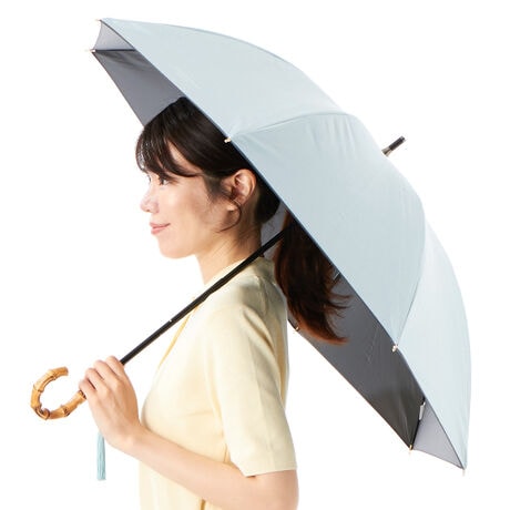 2色染めによる深みのある杢調の生地と、内外バイカラーの新鮮なデザインが魅力の晴雨兼用傘。バンブーの持ち手とタッセルが上品で優雅な印象を与え、カラーコーディネートを楽しめるデザインが特徴。一級遮光生地を使用し、機能性とデザイン性を兼ね備えた、洗練された大人のための一品です。