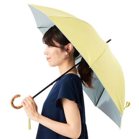 2色染めによる深みのある杢調の生地と、内外バイカラーの新鮮なデザインが魅力の晴雨兼用傘。バンブーの持ち手とタッセルが上品で優雅な印象を与え、カラーコーディネートを楽しめるデザインが特徴。一級遮光生地を使用し、機能性とデザイン性を兼ね備えた、洗練された大人のための一品です。