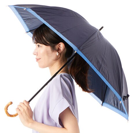 光を受けて繊細な色の変化を見せるシャンブレーリボンが、上品さを際立たせる晴雨兼用傘。バンブーの持ち手が高級感を演出し、表生地と調和する裏面カラーコーティングが洗練されたスタイルを完成させます。一級遮光生地を使用し、機能性と美しさを兼ね備えた大人の女性にふさわしい一品です。