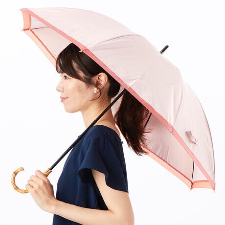 光を受けて繊細な色の変化を見せるシャンブレーリボンが、上品さを際立たせる晴雨兼用傘。バンブーの持ち手が高級感を演出し、表生地と調和する裏面カラーコーティングが洗練されたスタイルを完成させます。一級遮光生地を使用し、機能性と美しさを兼ね備えた大人の女性にふさわしい一品です。