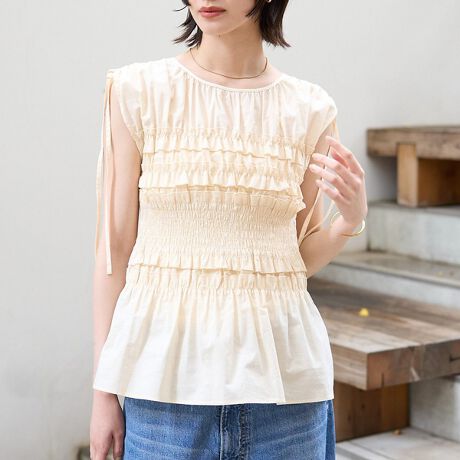 シャーリングによってウエストや胸元にメリハリが生まれ、
