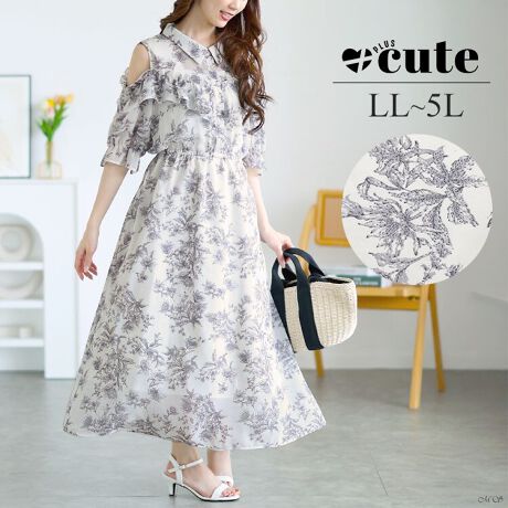 【大きいサイズ】 花柄フリルオープンショルダーワンピース 大きいサイズ レディース ワンピース 花柄