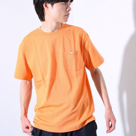 ・シンプルなポケットTシャツに、さりげない“フレンチブルドッグ刺繍”がアクセント。