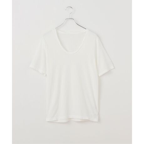 程よく鎖骨が見えるラインにし、1枚で着てもインナーに着ても程よいラフな雰囲気に。