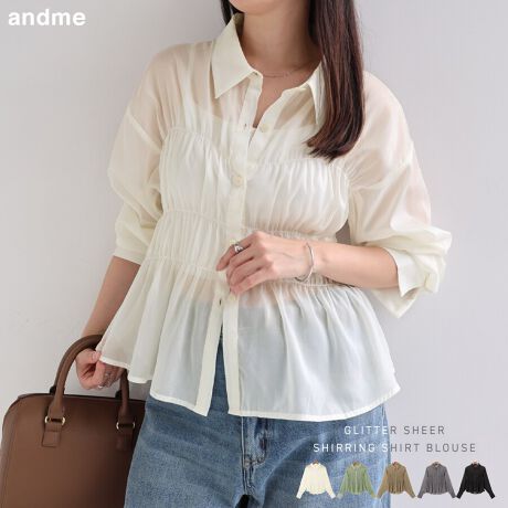 ビスチェ風 ラメ シアー ペプラム シャツ ブラウス