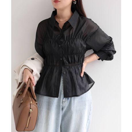 ビスチェ風 ラメ シアー ペプラム シャツ ブラウス