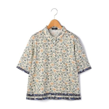 お花やクローバーのボタニカルモチーフが華やかなデザインの5分袖袖総柄シャツブラウス。異なるカラーの生地を袖先や裾にライン使いしたスタイリッシュなデザインがポイント。ゆとりのあるシルエットが旬のデザインディティール。お手持ちのボトムに合わせるだけで、スタイリッシュなお出かけコーディネートが完成します。