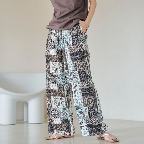 リラクシーなムード漂うパネルプリントが印象的なイージーパンツ。軽やかな素材感とウエストゴム仕様で、ストレスフリーな穿き心地を実現。