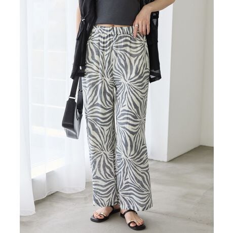 リラックス&カジュアルな雰囲気が魅力的なワイドパンツ。シーズンムード高まるボーホー柄プリントがスタイリングにスパイスを与えてくれます。ウエストは総ゴムで楽に着脱でき、快適な穿き心地も嬉しいポイント。デイリーユースはもちろん、リゾートシーンにも活躍するおすすめのアイテムです。透け感[ややあり]