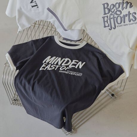 フロントに立体的な発泡ロゴをあしらったリンガーTシャツ。