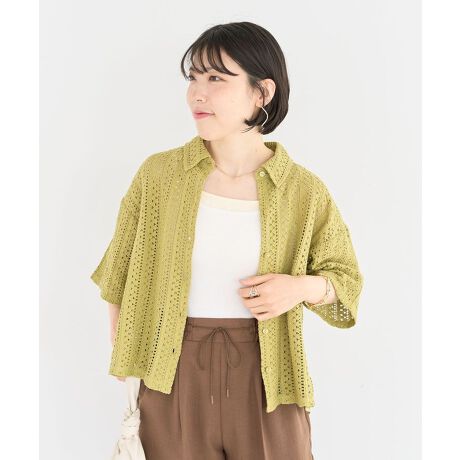 #綿#透かし編みトップス#衿付きシャツ#ショート丈トップス#羽織#レイヤード#夏#リラックスウェア#着回し万能#レディース#半袖