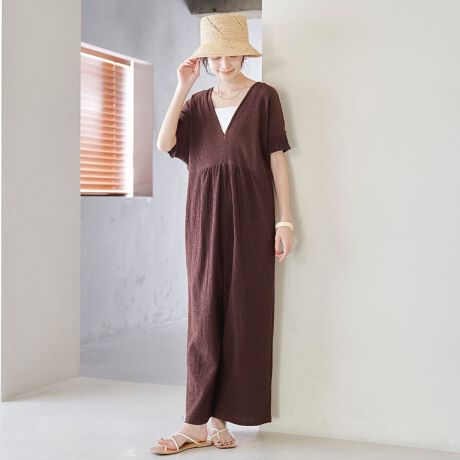 涼しげなサッカーチェック素材を使用した、これからの季節にぴったりのオールインワン。
