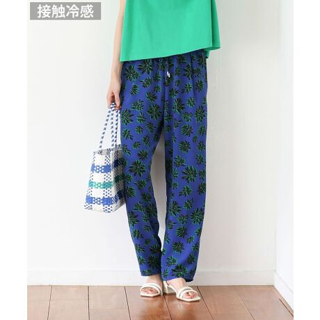 #柄パンツ#プリントイージーパンツ#接触冷感#花柄#アート柄#ウエストゴム#オフィスカジュアル#タック入りパンツ#リラックス#夏