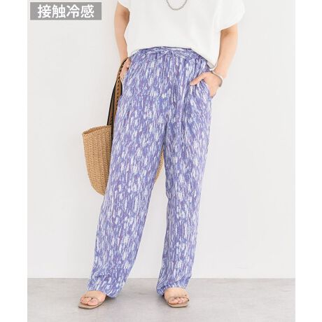 #柄パンツ#プリントイージーパンツ#接触冷感#花柄#アート柄#ウエストゴム#オフィスカジュアル#タック入りパンツ#リラックス#夏