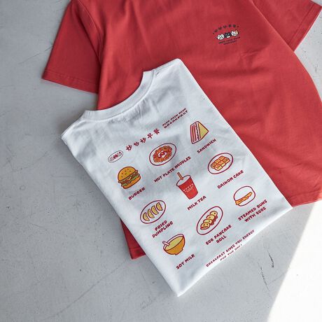 台湾屋台のメニューをイメージしたグラフィックが印象的なTシャツ。