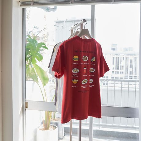台湾屋台のメニューをイメージしたグラフィックが印象的なTシャツ。