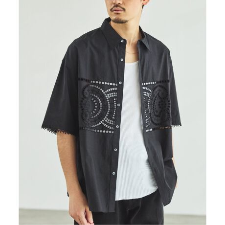 ・インドならではの個性的な柄をフロントに大胆にあしらった半袖シャツ