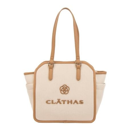 [型番:190241]ぷっくりと膨らんだ刺繍が上品なキャンバストート。目を引くカラーのポーチがついています。ファスナーとあおりポケットで機能的。持ち手の長さは調節可能で使い勝手も◎