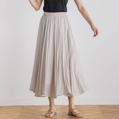 軽やかなシアー素材と麻調のナチュラルな風合いが魅力のフレアスカート。