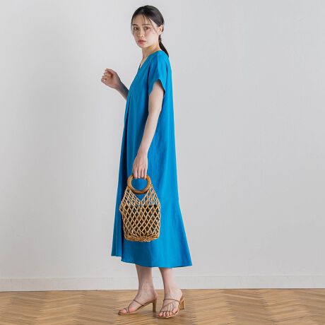 リネンの表情とレーヨン混の光沢がきれいめナチュラルなワンピースです。