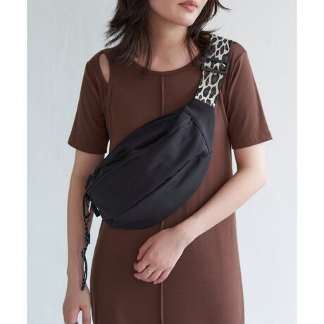 バッグ本体は無地でミニマルに仕上げ、ショルダーストラップ部分にアニマル柄を配したデザイン。